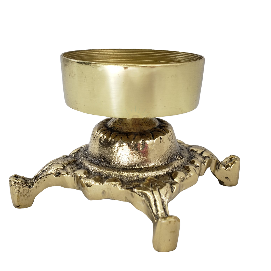 Este castiçal é fabricado em bronze maciço com banho dourado para velas com até 6 cm de diâmetro. Seu pedestal tem um bonito trabalho com acabamentos detalhados. Por se tratar de um produto feito a mão, podem ocorrer pequenas variações nas cores e dimensões do produto. Cada peça é única, nenhuma peça será idêntica à outra. Estas diferenças não caracterizam defeitos ou falhas de informações. As cores podem sofrer variações de tonalidade, devido ao monitor em que está sendo visualizado. Conservação e limpeza das peças: Limpar com pano levemente úmido e sabão neutro. Para tirar as marcas produzidas pelas mãos, usar flanela seca; Nunca usar produtos abrasivos, oxidantes e corrosivos. Medidas aproximadas: Altura total: 7 cm. Bocal: 6 cm (Diâmetro). Base: 8 cm (Diâmetro) Peso: 0,410 Kg.