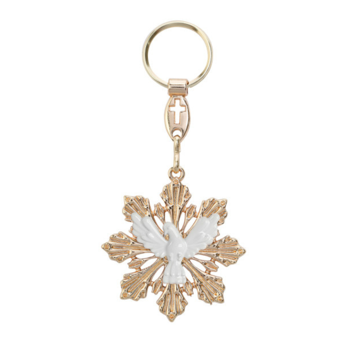 Este chaveiro é a escolha perfeita para quem busca um acessório sofisticado e cheio de significado. Feito com todo cuidado e dedicação, o design em dourado reluzente do Divino Espírito Santo é de tirar o fôlego, irradiando uma aura de esplendor e divindade.