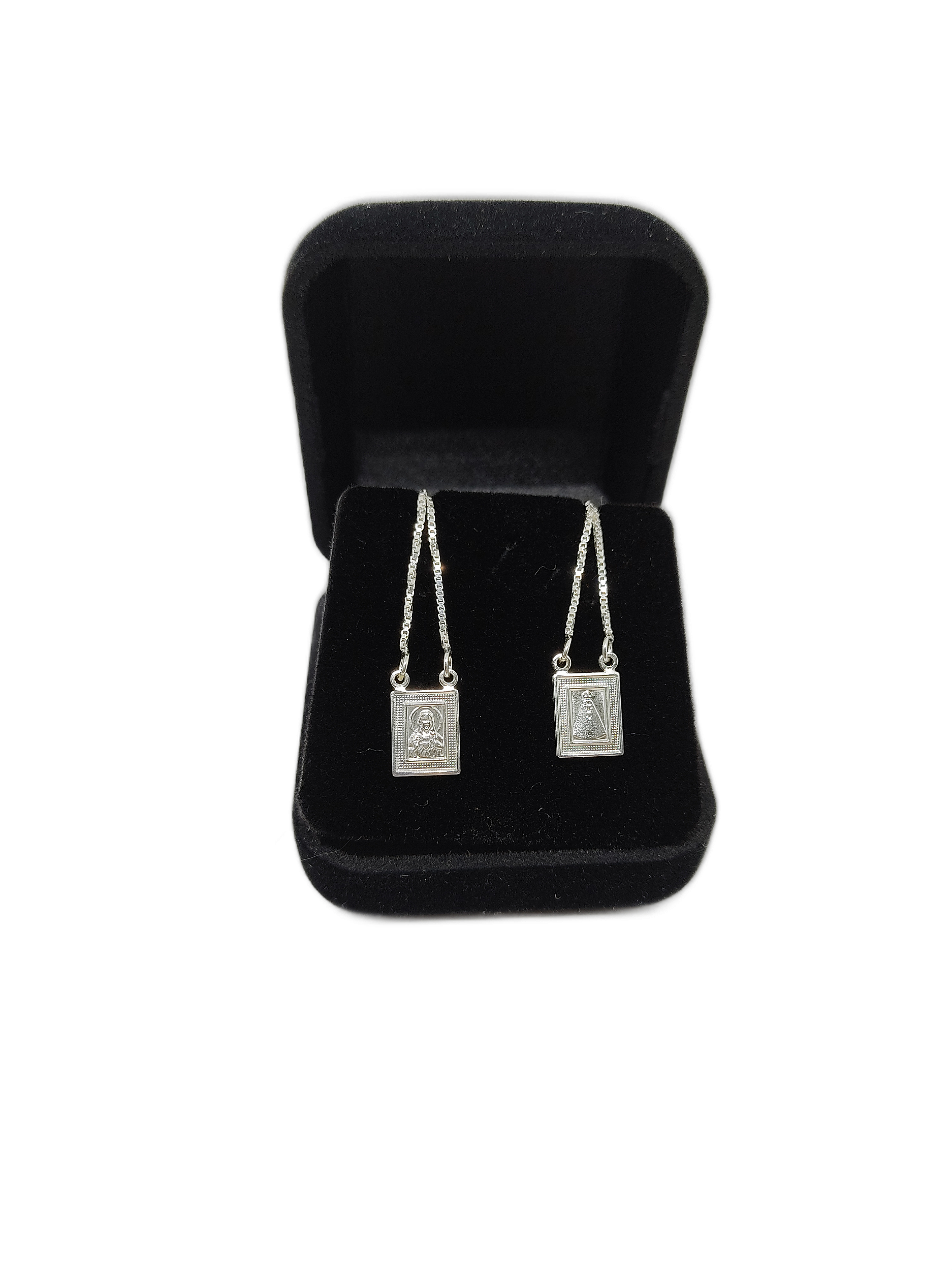 Escapulário com a Imagem de Sagrado Coração De Jesus Nossa Senhora Aparecida em prata pura 950.